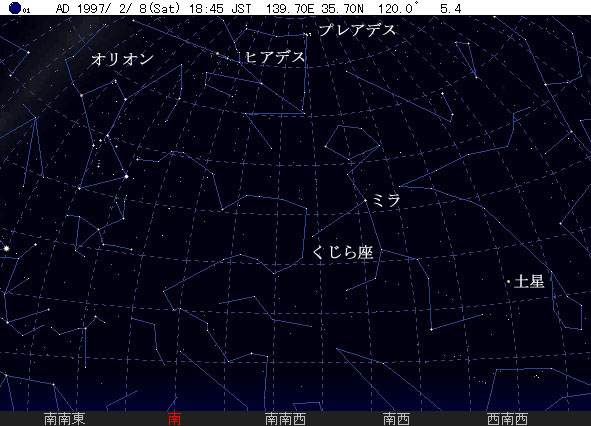 春から夏にかけて、ミラは太陽に近くなって見えなくなります。その後、また秋に なると見えるようになりますが、その頃には一番暗くなってしまって、肉眼では 見ることができなくなってしまいます。今、くじら座の写真を撮っておいて、秋に 撮った写真と比べてみると、ミラだけがなくなっているのが分かるでしょう。