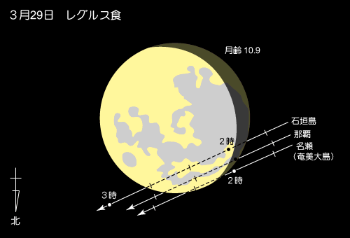 この日は沖縄方面では食となりますが、他の地域では月とレグルスの接近として見られます。