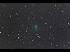 撮影日は22時くらいまで曇っていたが、のちまだ薄雲に被われているものの晴れてきていたので、明日からのタイフーンの影響で曇天になる前にと思って撮した。自動導入でないので、いつものことながら写野に入れるのに苦労する。撮し終えたときは、月が昇ってきていた。光害の酷い自宅撮影では、月の影響もいつもの空の状態と同じくらいで・・・。それにしてもこのMFレンズは自宅撮影で役に立つ。少し西にコマが広がっているように見えるが、彗星(核?)での合成はまだできない/判らない。画面右が北。