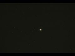 撮影していると彗星の核が次第にすぐそばの星と接近し、ついには星が見えなくなりました。そのころからほぼ曇ってしまい、ほんのわずかの雲間から出現後の1枚を撮ることができました。