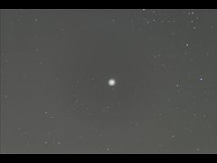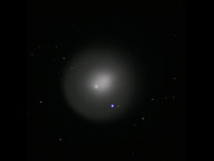 8cm20倍双眼鏡及び20cm反射38倍で観測、光度2,8等 視直径32分。中心核の周りにクラゲ状のコマ広がり、その周りに淡いコマの存在が分かります。またコマの北半分は、輪郭がはっきりしているのに南半分の輪郭はぼけていて、尾状に広がっています