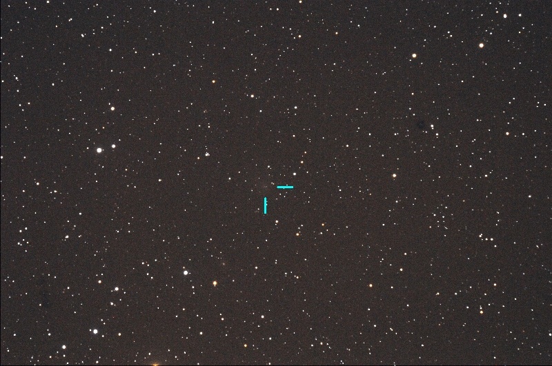 また、左上の端近くには、29P/シュワスマン・ワハマン第1彗星が写りました。ただ、ルーリン彗星よりも暗くて拡散しているので、わかりづらいと思います。