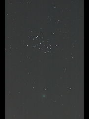 彗星とスバルとの接近は1986年のハレー彗星以来のことと思います。ハレーの場合はプレアデス星団により接近していました。当時、日経の駅貼り新聞写真ニュースにも掲載され話題になりましたね。