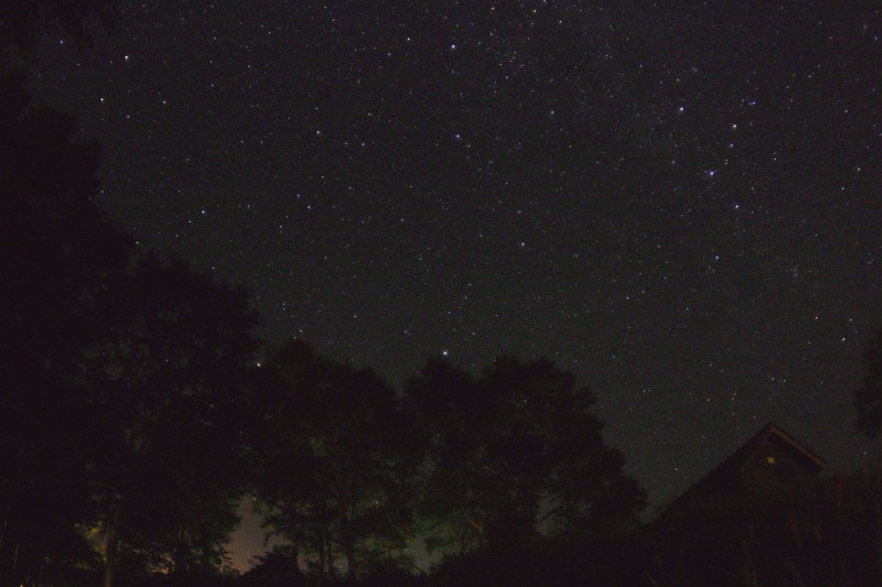 星空がひじょうにきれいなキャンプ場でした。キャンプ場の外灯を利用して、風景を入れた星空を撮影してみました。