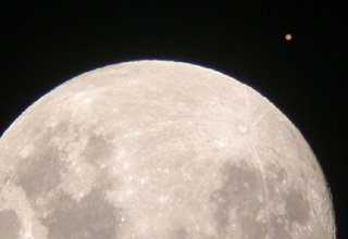 ニコンのデジタルカメラCOOLPIX995でとらえた月と火星です。