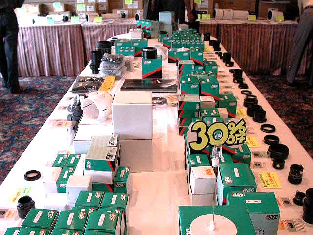 笠井トレーディング(東京吉祥寺 電話0422-40-0671)は、ロシアのマクストフ望遠鏡をはじめ、ドイツや台湾などの光学メーカーの望遠鏡、カメラ、レンズ、オリジナルFRPドブソニアンなどを販売するデーラーだ。同社代表の笠井氏は、自身天文ファンであり、良質の眼視用望遠鏡など独自の視点で輸入販売を行なっている。また、台湾メーカーのアクロマート屈折を国内メーカーでは実現し得ない低価格で供給してもいる。ふだんは雑誌広告や、通販カタログで無店舗販売を行なっているが、年に何回かはこういったフェアを行ない、大規模な「展示商談会&即売会」を開催している。