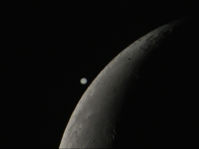 撮影者/東田守生 撮影地/大阪府 ※ 東田さんの WebPage 「月世界への招待」 に、多数の木星食の写真が掲載されています。 |