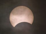 - 食の欠けはじめが曇り、最大ちょっと前でパソコンのトラブル、その直後曇ってしまい部分日食の全行程のアニメーション撮影ができませんでした。非情に残念ですが見られただけでもラッキーでした。