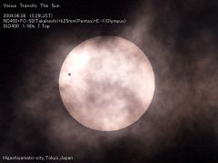 午後2時から4時半まで、ただひたすら「雲」を見つめていました。その150分の中で太陽が雲を通して見えたのは、合計で1〜2分でしょうか。辛抱の甲斐がありました。しかし金星の大きいのには感動でした。昨年の水星とは段違いです。