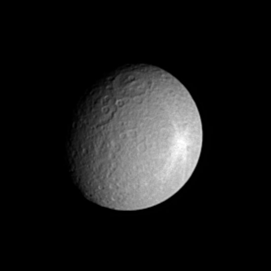 このレアの画像は、10月24日にカッシーニが170万kmの距離から捉えたもの。レアの直径は1,528kmで土星の衛星としては2番目に大きく、われわれの月の半分程度の大きさである。次のレアの画像撮影はホイヘンス探査機がタイタンへ着陸を終える直後の来年1月中ごろで、その画像の解像度は今回の約10倍向上する予定である。