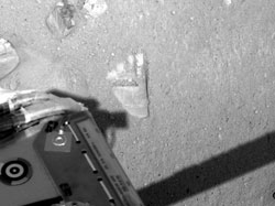 こちらの画像には、「イエティ(雪男)」の仮称がついた、ロボットアームの第一歩ならぬ「第一手」が写っている。その後掘削が始まったが、採取した土には、明らかに白い物質が混じっていた。はたして氷なのか、それとも別種の鉱物なのか。今週中に予定されている、サンプルを暖めて蒸気を調べる実験で答が分かるかもしれない。