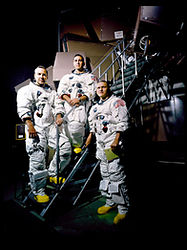 アポロ8号の宇宙飛行士3人。1968年11月ケネディ宇宙センターにて撮影。左から、J. ラベル Jr.氏、W. アンダース氏、F. ボールマン氏。クリックで拡大(提供:NASA)