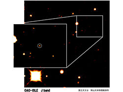 岡山天体物理観測所188cm望遠鏡+赤外線観測装置ISLE(アイル)がとらえたGRB 090423(拡大図中央の丸印)。クリックで拡大(提供:国立天文台 岡山天体物理観測所)