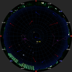 天文シミュレーションソフト「ステラナビゲータ」では、主な流星群14個を表示することができます。「天体」メニューから「流星群」の表示を設定し、アニメーションを実行してください。