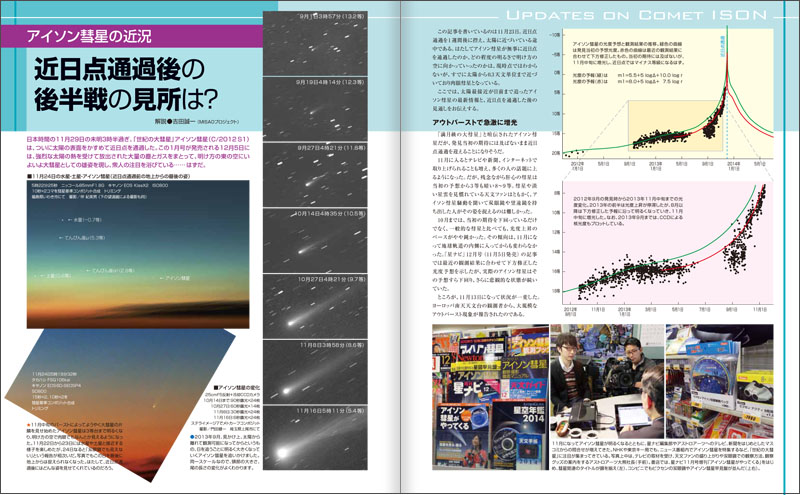 星空を楽しむための月刊「星ナビ」2014年1月号は、12月5日(木)発売です。太陽最接近とともに散り、もう二度と見ることができないアイソン彗星。その近日点通過前の姿を記憶にとどめ、新しい年の新しい天文現象に改めて希望を見いだしましょう。
