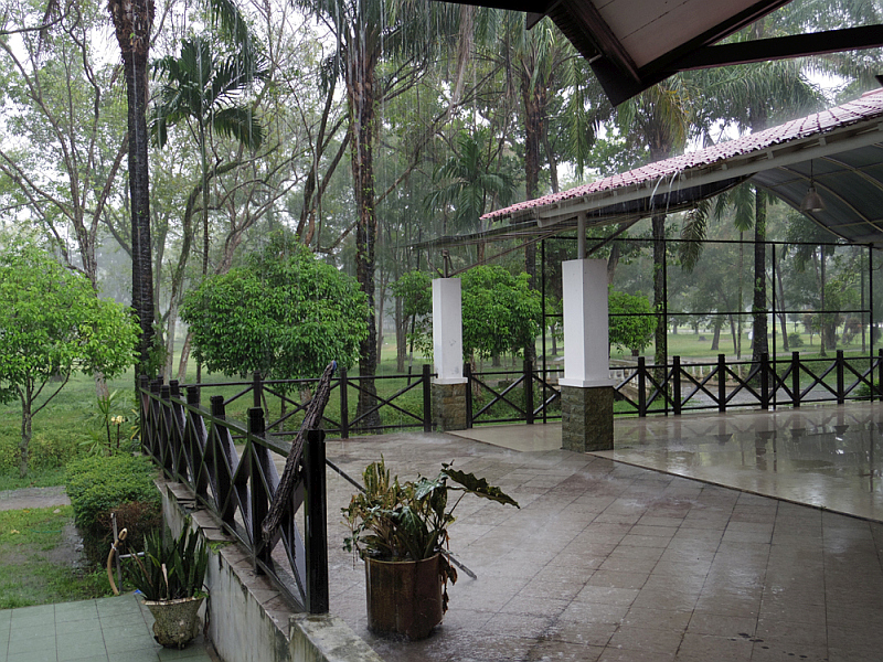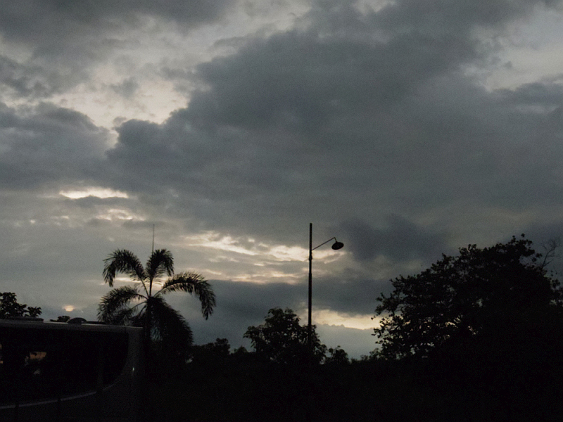 観測地の日食中心線に近いパランカラヤ郊外のゴルフ場は、日食が始まる約2時間前からまさかの大雨に見舞われました。第二接触前に一時雲が切れて太陽が姿を現しましたが、その後ふたたび雲が厚くなり皆既は見られず、次に太陽が出てきたのは第三接触が終わったあとでした。ツアー参加者からは「30分ずれていれば……」という嘆きの声が聞かれました。