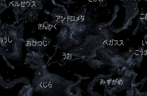 「くじら座はどっち?」というときは[星をさがそう]メニューから。(下画面)