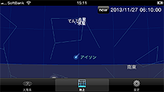 iOSアプリ「アイソン彗星を見よう」を使って、アイソン彗星がどの方向に見えるか探してみましょう。