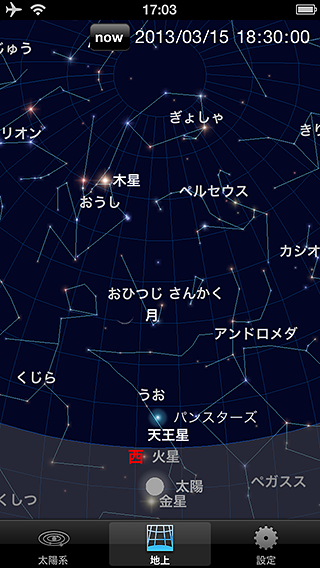※より細かく星図の表示を設定したいときは、「iステラ」(iPadユーザーの方は「iステラ HD」)もあわせてご利用ください(どちらも有料アプリです)。