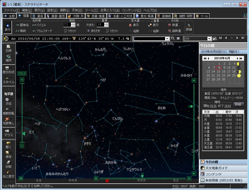 遠征を検討したり、観望を予定している天文現象を下調べするのに、ステラナビゲータほど便利なものはありません。