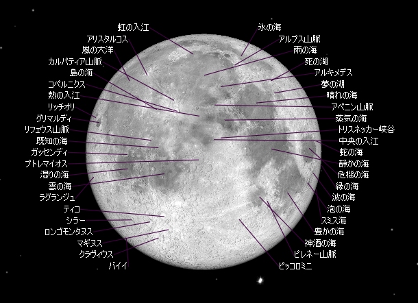 もちろん、地球の仲間である太陽系の天体も正確にシミュレーション。惑星は、ズームアップするとリアルな模様を表示します。とくに身近な月と火星は地名も表示できるので、望遠鏡で観望するときに便利です。