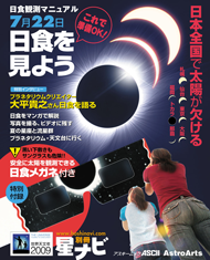 天文ソフト「ステラナビゲータ」の開発や天文雑誌「月刊星ナビ」の発行など天文関係プロダクツの開発会社である、株式会社アストロアーツは、2009年7月22日に日本全国で見られる日食の観測や撮影の方法などを写真とイラストで詳細に解説した日食メガネ付きムック「日食観測マニュアル」を発行いたします。