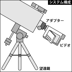 デジタルビデオカメラの多くにはフィルタネジがついているので、これを利用して望遠鏡に接続するためのアダプタが市販されています。また、フィルタネジのないビデオカメラ、さらにはコンパクトデジカメでも、三脚取り付け用ネジを利用するミード社「デジタルカメラアダプターII」という手段があります。
