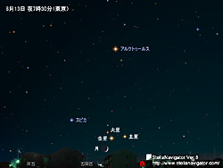 8月13日 午後7時30分の西の空のようす。クリックで拡大(ステラナビゲータで作成)