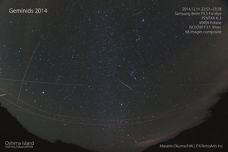 流れ星の観察は町明かりや月明かりの影響を大きく受けますが、今年は12月11日が新月なので14日ごろの月は宵の早い時間帯に沈んでしまいます。夜空には月明かりの影響がありません。