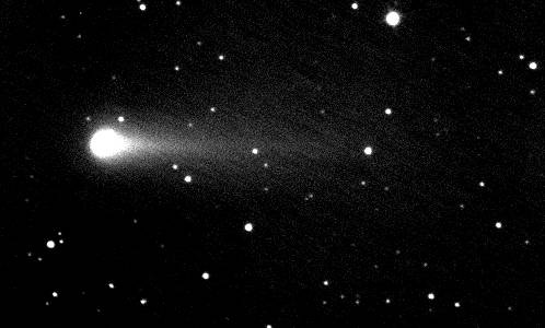 5センチメートル×7倍の双眼鏡でも、わずかに伸びる尾が見ることができました。 佐野氏のホームページ:http://www3.ocn.ne.jp/~sanosn/sanosn.html 2000年7月10日 01時08分から(240秒露光1枚) 撮影者/佐野康男(北海道名寄市) 撮影地/北海道名寄市 撮影機材/ペンタックス75SDHF(7.5cm、F6.7)+ タカハシEM200、ピクシス + SBIG ST-9E 左画像をクリックすると、より大きな画像が見られます。 |