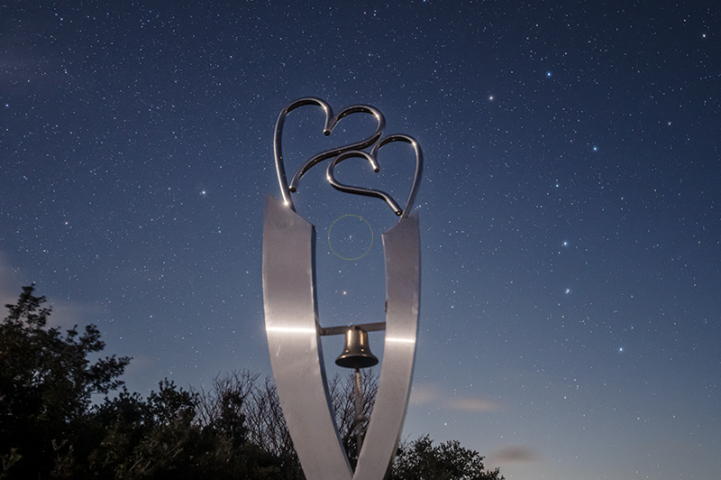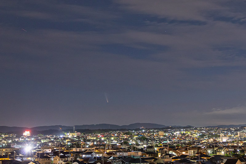 尾が伸びた彗星の写真を地上の景色とともに撮ると、面白い「彗星星景」になります。このような撮影は、カメラを三脚に固定する方法で比較的簡単にできます。