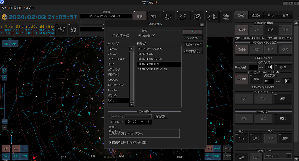 • 撮影のターゲットに応じて星図の表示を設定しておくと便利です。