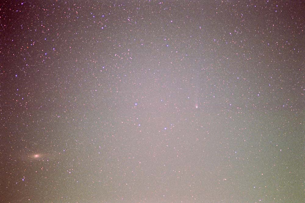 前評判では、尾は100度を越える等騒がれていましたので、あわてて広角レンズを購入しました。近日点に接近しても一向に明るくならず、尾もショボイもので、彗星の光度予測ほど当てにならないものは無い、と実感した彗星でした。