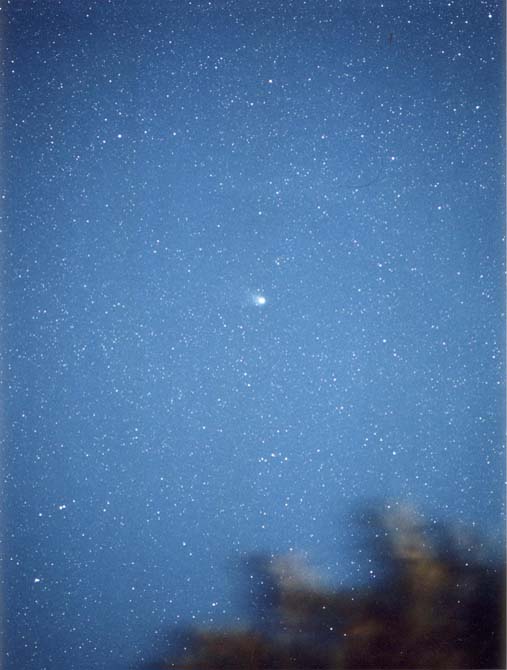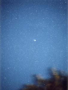 1990年の夏、もうすぐ1歳になる初めての子どもが物心ついた時、子どもに話してあげたり、一緒にできるような趣味も持って居なかった自分が情けなく思いバードウオッチングでも始めようかと思った矢先、出張中に車のラジオからレビー彗星が見えるとの話を聞いた途端、昔やっていた天文の趣味を再びやり直そうと本屋に駆け込んで、初めてスカイウオッチャー誌を手に入れ家に帰るや否やしまい込んでいた10センチの反射赤道儀を引っ張り出して極望も無い赤道儀にカメラを取り付けて、赤経どころか赤緯の両軸手動で撮影した写真です。これがきっかけで今はどっぷりと天文に…。